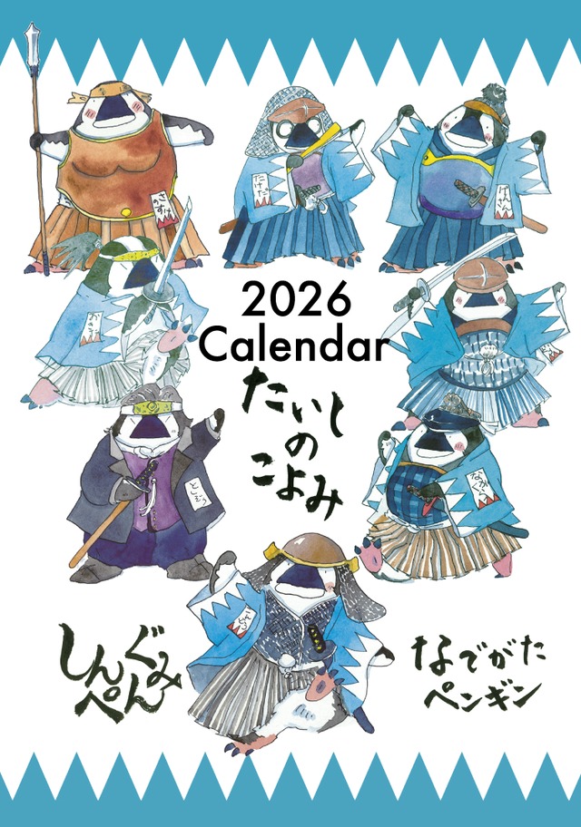 2026年 今年の壁掛けカレンダーは、たてながバージョンです! しんぺんぐみの”鉄の掟”とともにおとどけします。 南極でくらすかれらの掟といえば「極中法度」(新選組の局中法度の南極版とかけた(笑) アナタの日々のくらしもこゆるく律してくれるはず! ちょっびっと”什の掟”よりです。 ちなみに、小姓のてつのすけ君もどこかにいます! ※什の掟:会津藩の子供たちが行動規範としていた掟のこと。「ならぬことはならぬものです。」などがあります。(新選組ファンならば解説不要かな?) ぜひお家の壁にさげてみてください! ************** たて182.0×よこ128.0mm ひらいて下げたときは たて364.0mm×よこ128.0mmとなります。 配送はポスト投函となります。梱包材にはリサイクル品を使用することがあります。